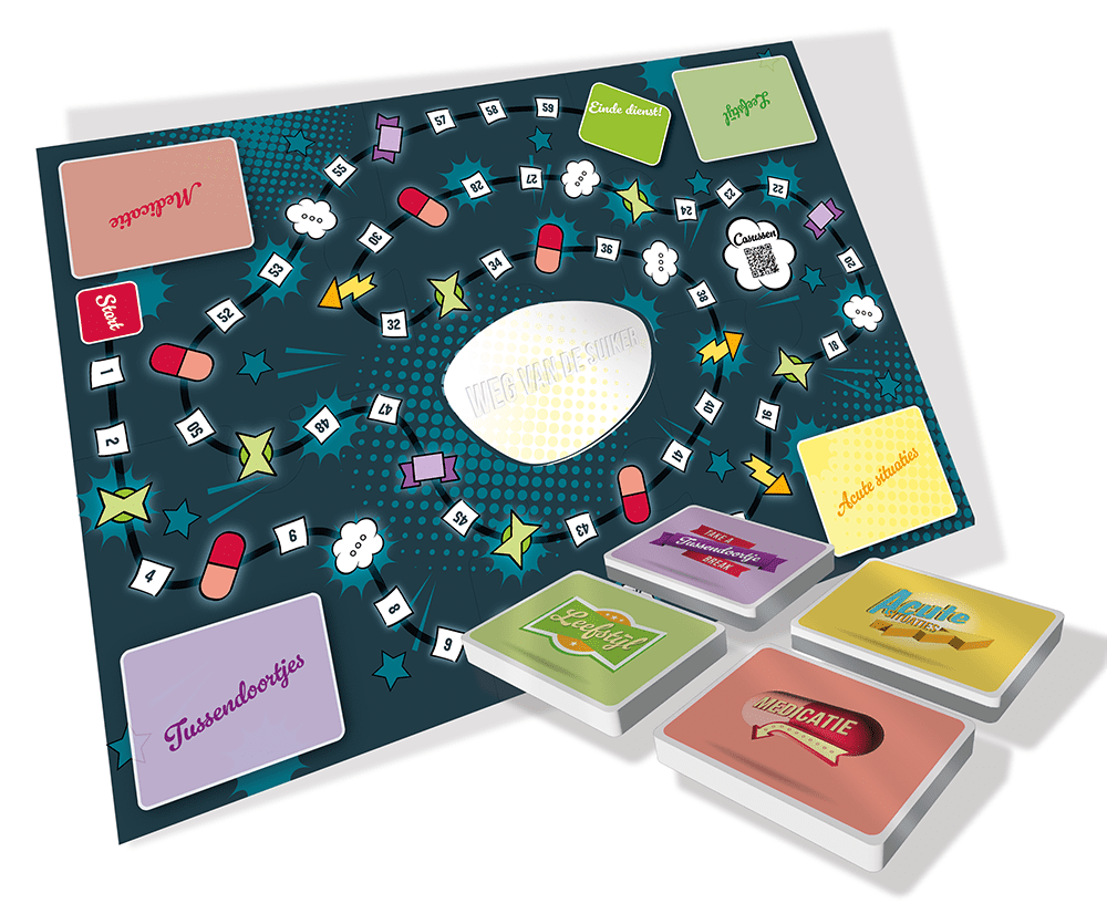 ‘Weg van de Suiker’ is een serious game waarmee je met je praktijk op een ontspannen manier de uitdagingen rondom leefstijl aangaat. Het bordspel met kaarten is ontwikkeld in samenwerking met Stichting Je Leefstijl als Medicijn en met medewerking van meerdere huisartsen en POH’s.