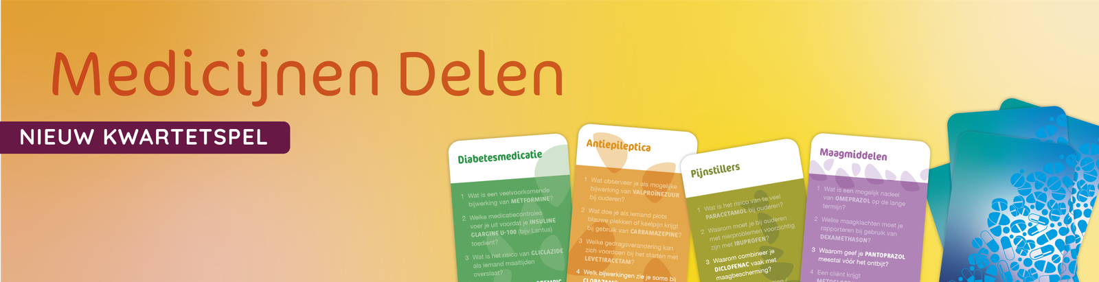Toch blijft het in de praktijk lastig om actuele kennis over medicatie toegankelijk, toepasbaar en levendig te houden op de werkvloer. Dáár komt het kwartetspel ‘Medicijnen delen’ in beeld.